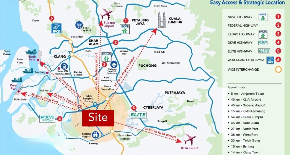 Easy access to various highway (SKVE, KESAS, ELITE, WCE) centrally located between Port Klang, KLIA and Shah Alam.